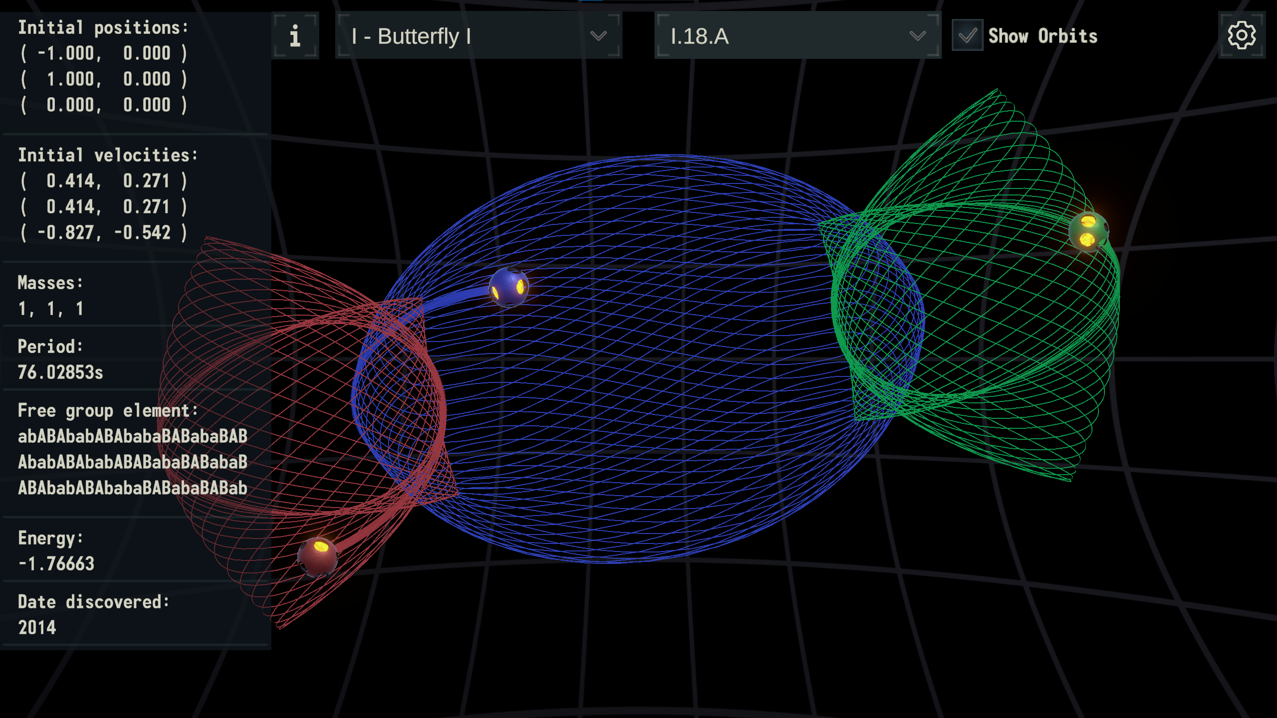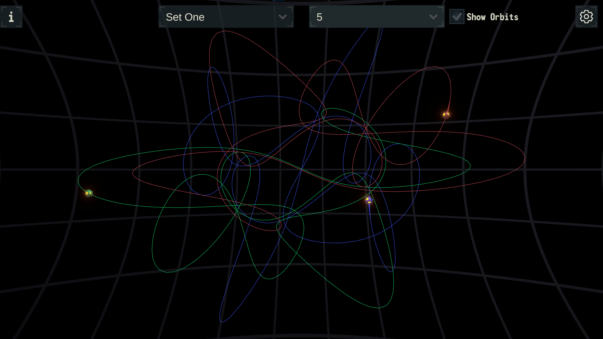 This project was inspired by Ricky Reusser’s blog on the same topic. He attempted to build a JavaScript simulation of specific three-body orbits that are periodic and create interesting patterns. I wanted to explore this simulation as well, so I translated it into C# and used Unity’s graphics and UI systems to present these simulations in a new light.